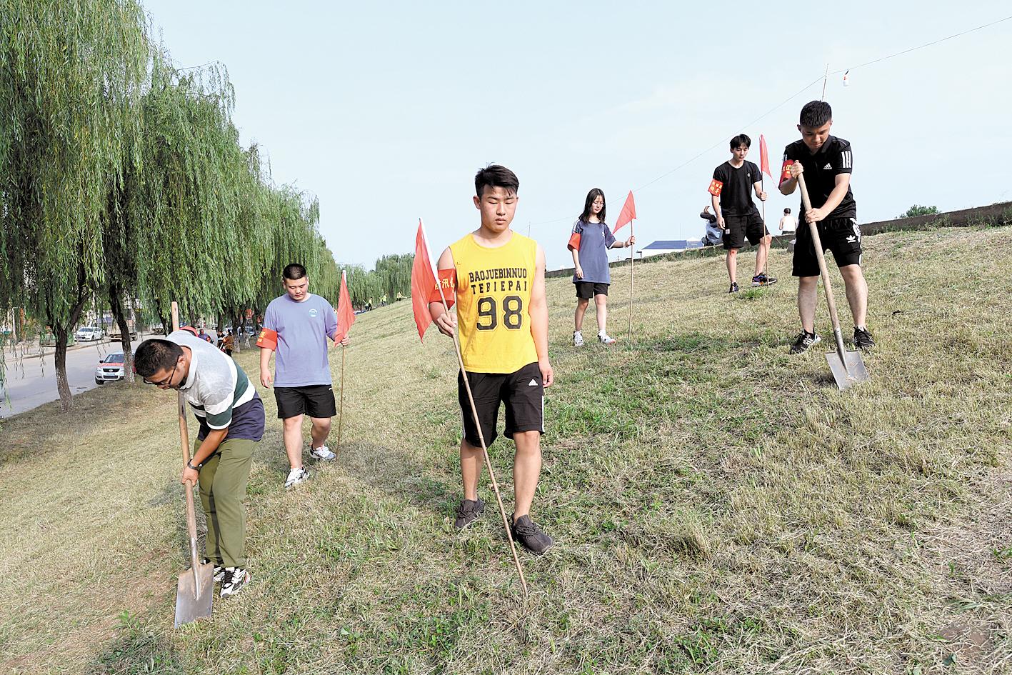7月14日,黄梅县小池镇新河桥社区“00后”大学生组成青年突击队,在黄广大堤小池段巡堤查险。他们是武汉、九江、杭州等地高校的大学生,因疫情影响滞留在家上网课。长江发生严重汛情后,十几名“00后”大学生主动向社区提出申请参加抗洪。