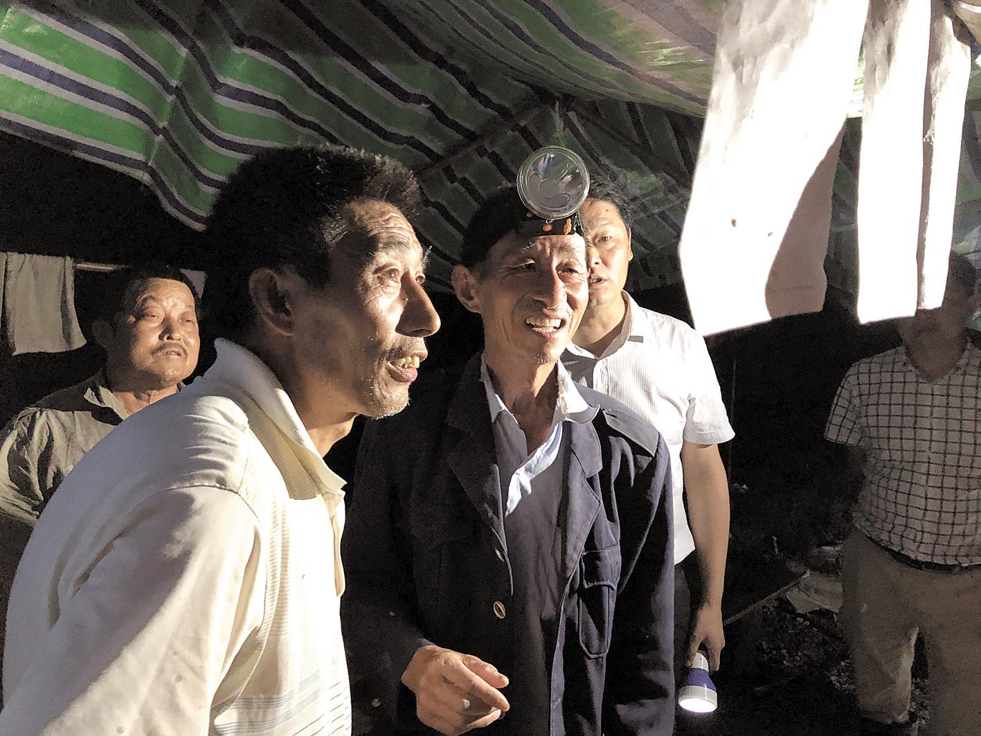 堤上,偶见三四名轮班下来的村民手打蒲扇,来回走动驱赶着蚊子。远处的河堤,灯光闪闪发亮,隐约可见脚穿雨靴、手持铁锹和手电筒的巡堤人。