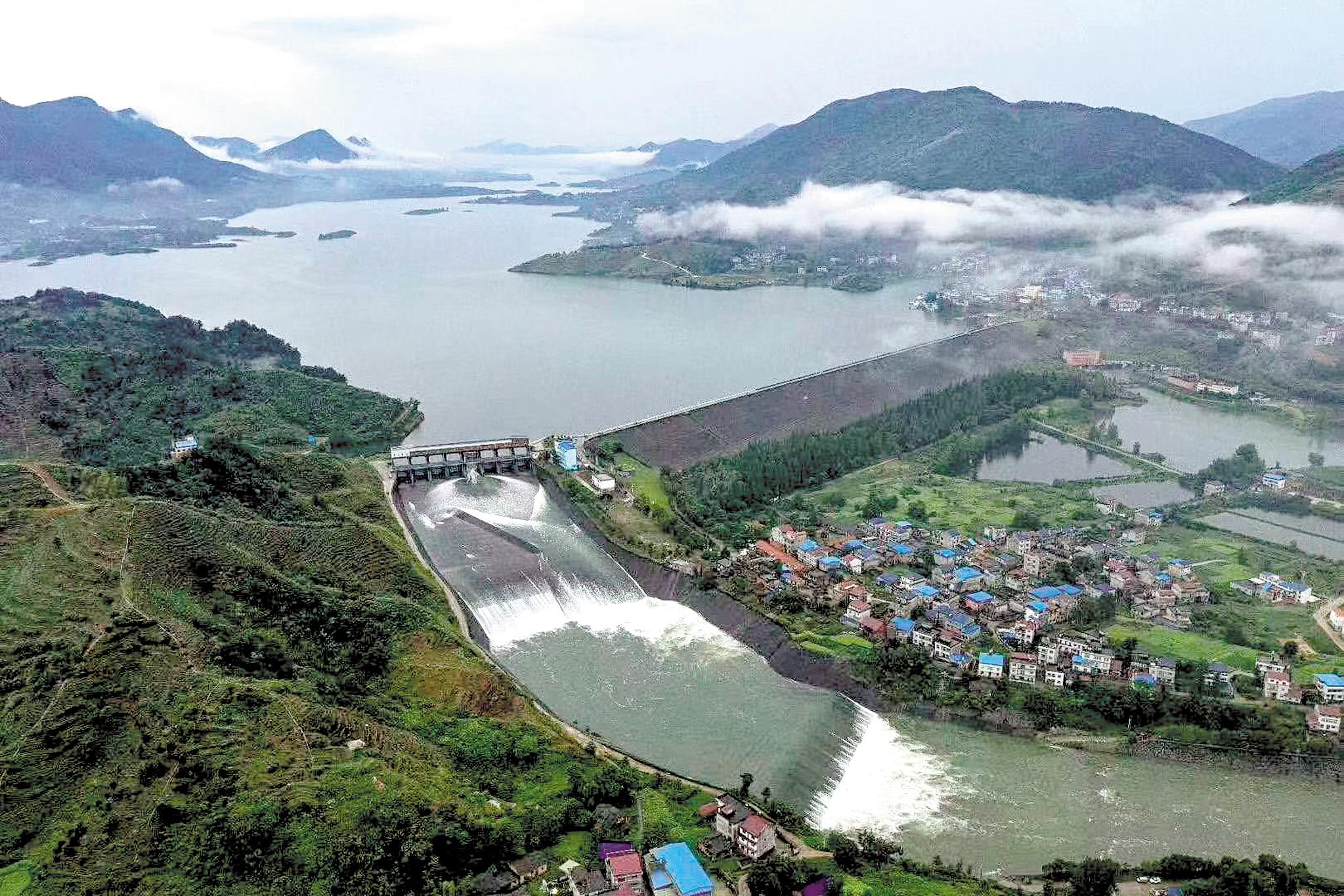 通山县委办主任方家忠介绍:“2016年,富水水库水位到57米时,通山县城淹了一半。今年,富水水库水位一度跃升至58.51米,县城没有淹水。”