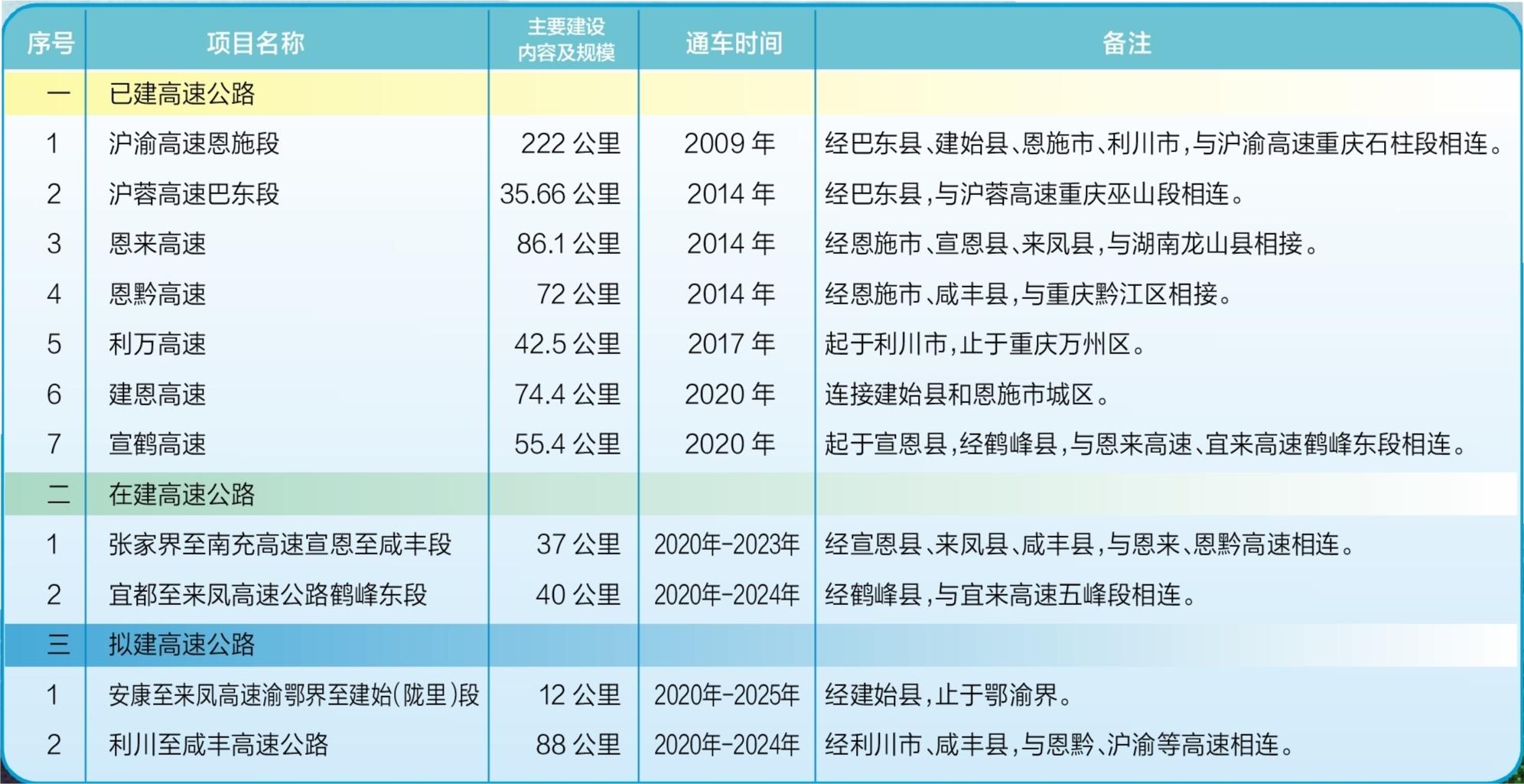 恩施州高速公路一览