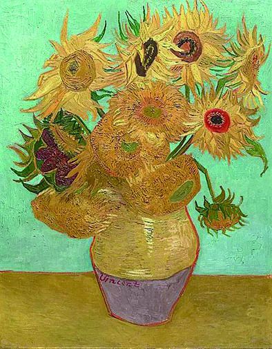 在这个八月,温森特开始了向日葵系列。他画向日葵,背景采用淡蓝色,继而,他像其他伟大的创造者那样,明白不能打折扣,必须将心中的牵念贯彻到底。直到画这些黄花时,插在一只黄色花瓶里,置于黄色的背景中。在此过程中,温森特还画了坐落在集市广场的一家咖啡馆露天座夜景:黄色露天座映照着灯光和深邃而美妙的蓝色星空——极少几幅阿尔勒城中心的画作之一。