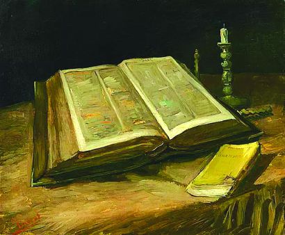 在此之前,1885年3月26日,不幸降临了他的家庭。提奥多鲁斯牧师,这位温森特曾无限崇拜,后来又无比激烈地鄙弃的父亲,在一次心脏病后突然离世。也正是在这个时候,温森特看到了伦勃朗和哈尔斯的作品,看到了“彩色”这条绘画的新路。创作的狂热牢牢控制着温森特,但牧师的阴影始终在眼前。1885年10月,温森特终于准备面对父亲去世后一直压在心头的问题,他仗恃寻回来的这种自信,进展迅速,一下子就画出《静物:翻开的》。