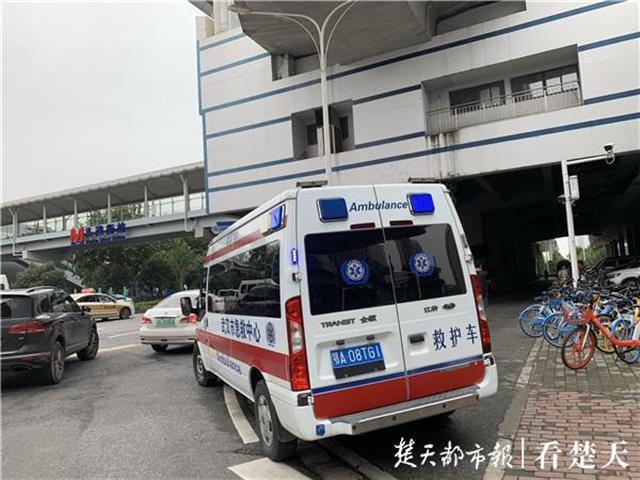 下午3时许,楚天都市报记者来到1号线头道街站,一辆救护车停在轻轨站外等候。不久,医护人员推着一辆担架车从地铁站电梯出来,担架上躺着一名中年女乘客,头部被包扎起来。多名轻轨工作人员和民警紧随其后。