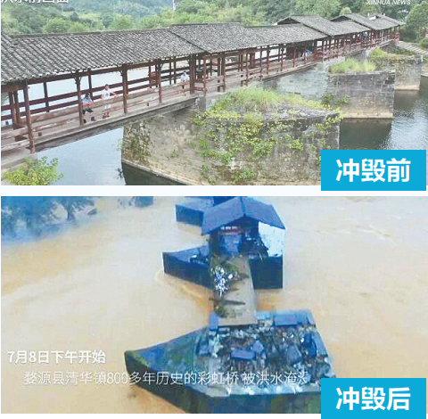 800岁彩虹桥、500岁镇海桥、400岁乐成桥……这些古桥见证了当地的发展和兴衰,也承载着无数人的珍贵记忆。然而,短短时日,这些见证历史的古桥被洪水冲毁,赢了时光却败给洪水,令人无不落寞扼腕。