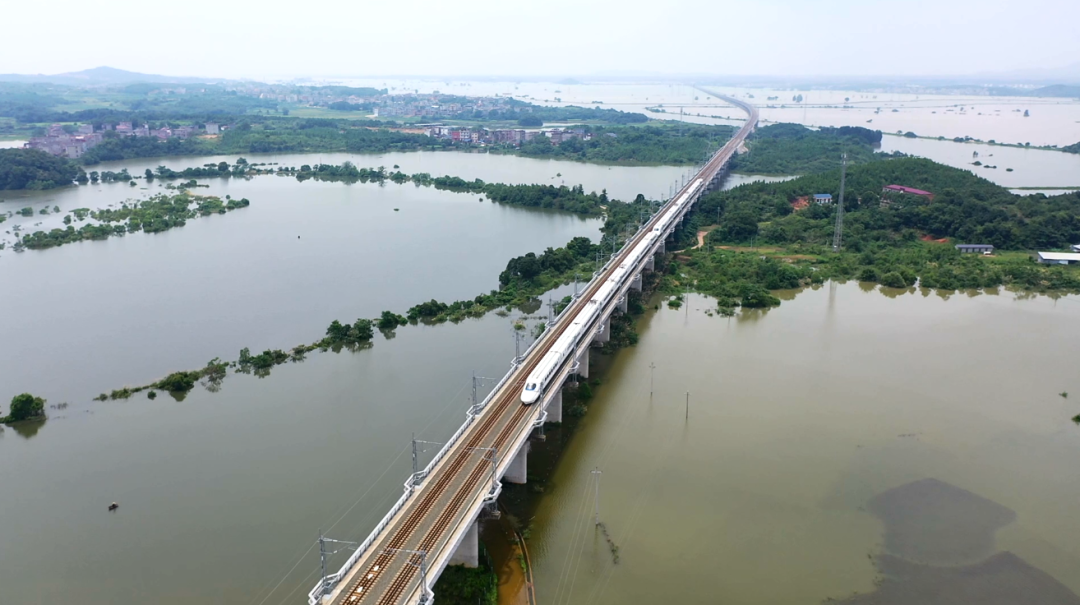 全长5500米的九景衢铁路鄱阳湖特大桥,横跨于鄱阳湖之上,一侧是鄱阳湖,一侧是长江,加之大桥处于风口位置,湿冷的大风有时能达到六、七级,被称为“风口浪尖”上的铁路桥。