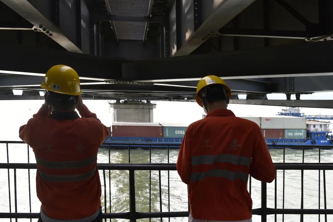 “大桥上安装了自动水位测量仪,可以实时向安全调度中心报告水位情况,我们还可以通过监控摄像头观察过往船只,发现超高超限的大型船只,要立即用喇叭呼停,防止撞上大桥钢梁。”党颉明和工友盯守在大桥上,发现安全隐患要及时启动警报系统。