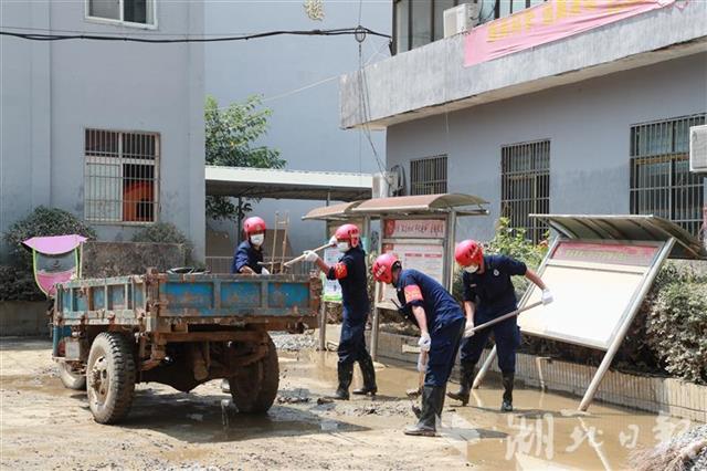 湖北日报讯(记者张卫华、通讯员鄂消宣)7月17日,接湖北省消防救援总队指令,驻守在九江都昌县的30名抗洪突击队员赶赴上饶市鄱阳县谢家滩镇开展淤泥清理和杂物清除工作。