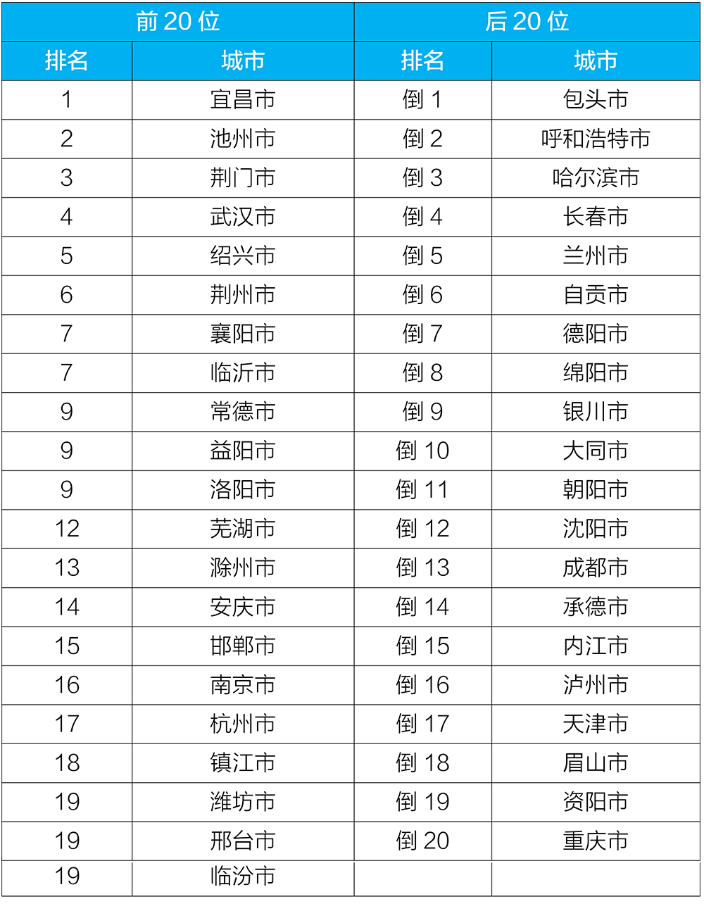 2020年1-6月168个重点城市空气改善幅度排名前20位和后20位城市名单