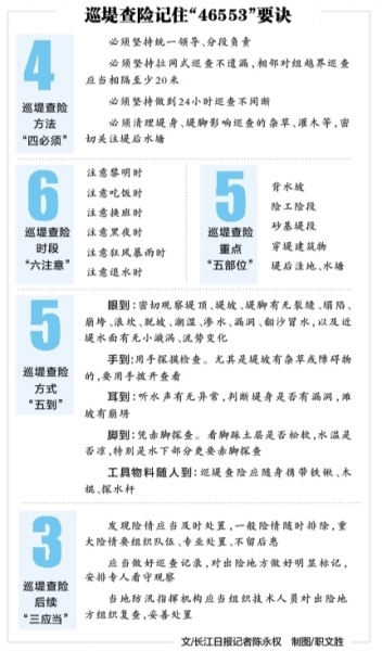 “加强堤防巡查力量,加密超警堤段巡查频次,这样才能将险情消灭在萌芽状态。”郑杰告诉长江日报记者,目前长江、汉江干堤,在1998年后经过系统整险加固,土堤基本没有问题,但要防止建筑物与土堤之间险情发生,如穿堤涵管、泵站管道、消防管道等,这些建筑物因深埋堤防内,时间过长容易老化、变形。一旦遇到长时间浸泡,容易出现渗水险情。