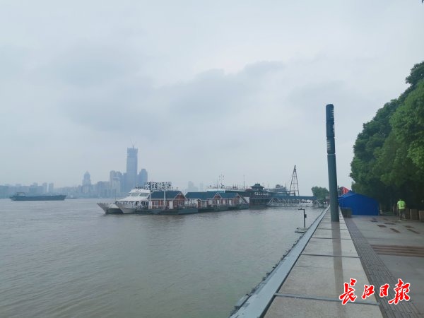 如今,昔日溃堤险段已绿树成荫,绵延的步道成为市民观景休闲的好去处。石碑不远处就是武昌区中华路街集装箱码头值守点,值守人员在200米长的堤段来回巡视,提醒市民切勿翻越护栏观江。
