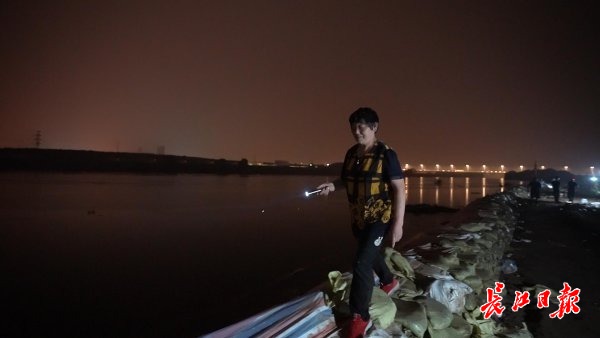 凌晨3时,水位基本保持在28.29米,洪峰平稳过境。一位村民在堤上,望着眼前平静流过的水,双眼疲惫但目光柔和:“往往最困的就是这个点,但是一想到水,一想到堤后面就是自己的家,那是再困也要打起精神了。”