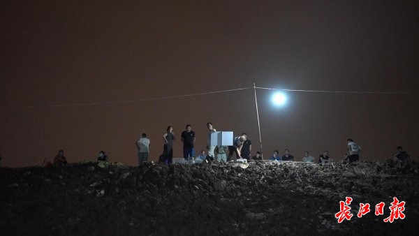 南湖村村民彻夜值守民垸大堤灯火通明。记者胡胜 摄
