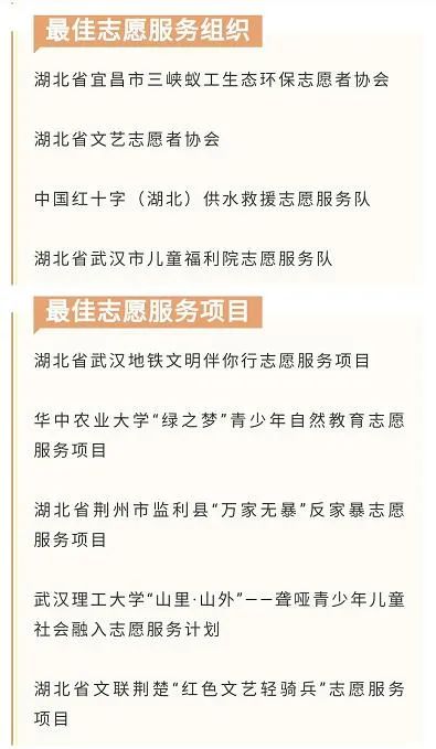 新冠肺炎疫情发生以来,全省3万多个志愿服务组织、120多万名志愿者积极投身疫情防控工作,“逆行”穿梭于大街小巷,日夜奋战在各抗疫一线岗位,充分体现了志愿者的强烈担当、责任意识和奉献精神。今天,志愿服务先进典型名单公示,湖北这些典型入选。