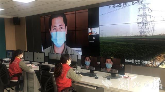 4月8日,国网湖北检修公司鄂西北分部生产指挥中心远程视频连线现场施工人员开展稽查。