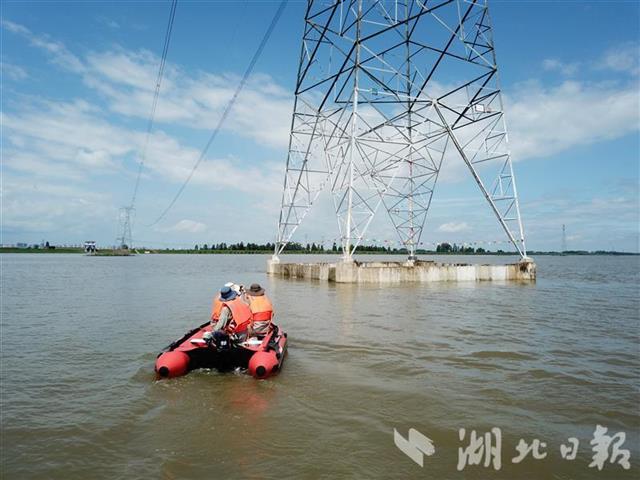 ±500千伏宜华线628号杆塔位于孝感府河河床中央的一处小岛上,持续强降雨造成小岛被水淹没。眼下,这条线路每小时向上海输送284万度电,安全稳定不容有失。连日来,输电检修中心运维班成员乘坐冲锋舟巡视线路。