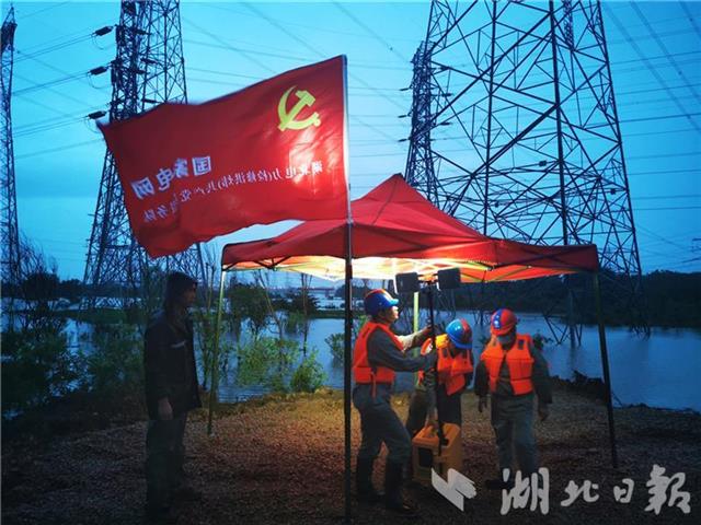 7月10日,东荆河流域主动泄洪,导致水位暴涨,淹没了附近线路杆塔基础,而500千伏葛军线是鄂东环网的主动脉,承担着蔡甸及周边地区的电力输送。国网湖北检修公司输电检修中心组建了以党员为先锋的防汛保电小队前往现场。小队打着手电筒缓慢前行,摸清了被淹的23基杆塔基本情况。