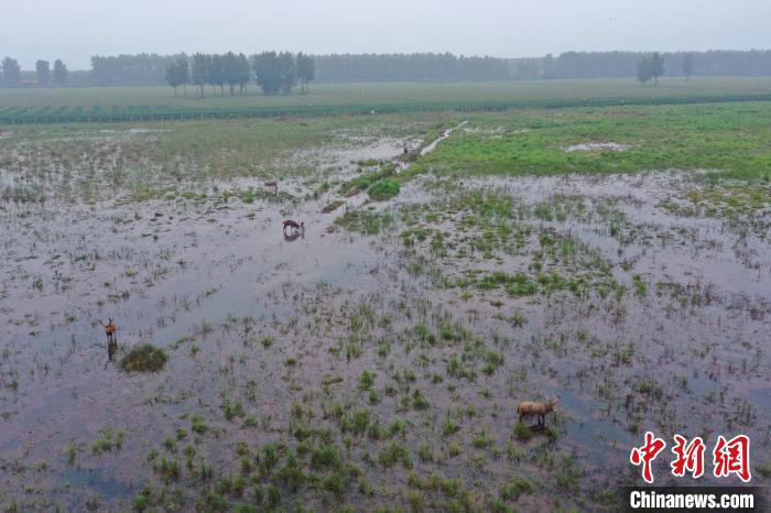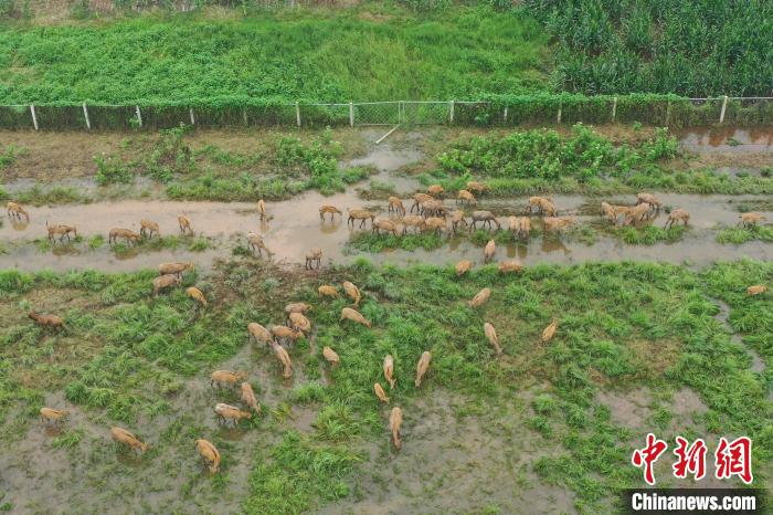 “‘安全区’自成系统,不论汛期还是干旱期,均可为麋鹿提供安全无忧的生存环境。在这里,可以保证麋鹿吃喝无忧。”温华军说。