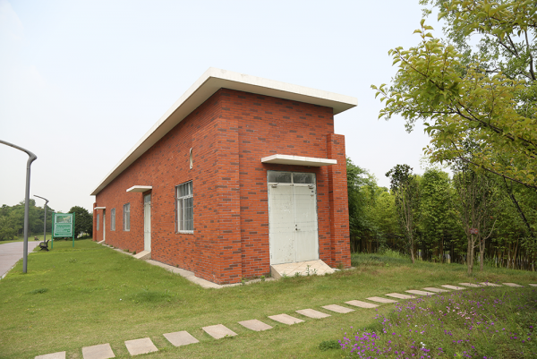 此外,泵站站区绿化建设也融入了海绵城市理念,设置下凹式绿地、旱溪,屋顶种植佛甲草,乔木灌木相间种植,打造花园式泵站。真空破坏阀室采用深红色劈裂砖装饰与青山区江滩改造有机融合。