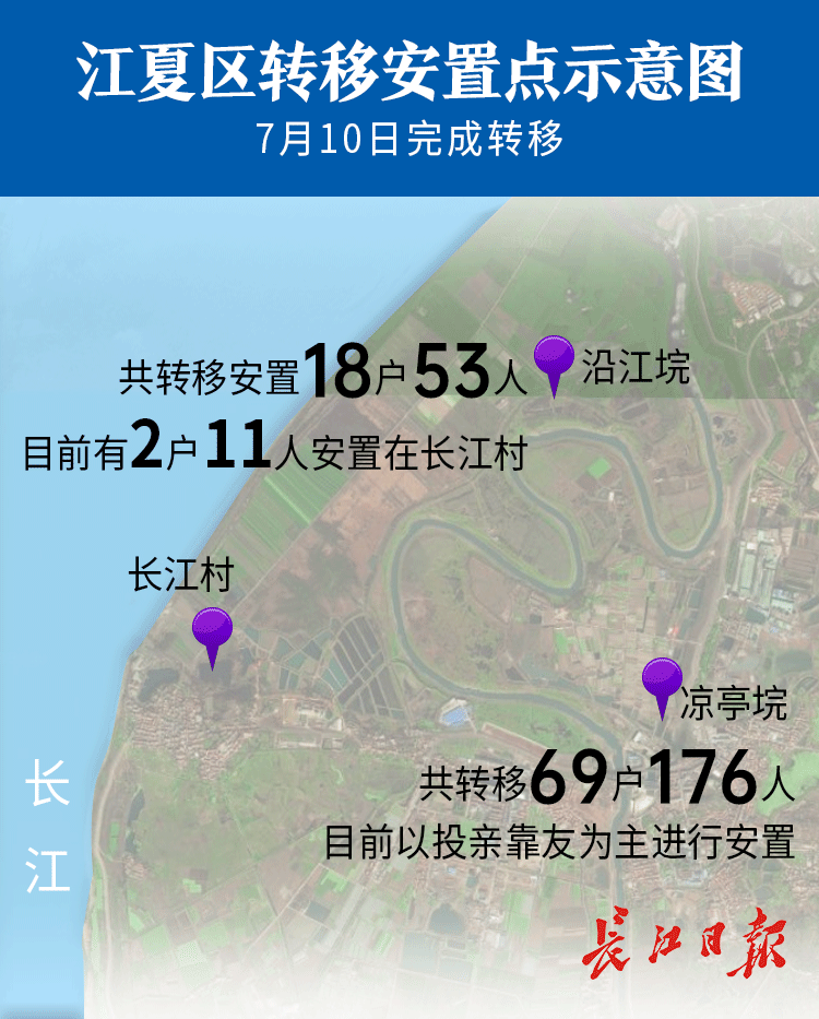7月10日下午6时许,江夏区金口街,两大单体民垸沿江垸和凉亭垸完成平垸行洪。此前凉亭垸已转移安置群众69户176人,沿江垸共转移安置18户53人。金口街道办事处副主任刘贤明告诉记者,两垸转移的群众主要是外来承包户和周边居民,其中大部分都已回家或投亲靠友,目前只有2户11人安置在长江村。