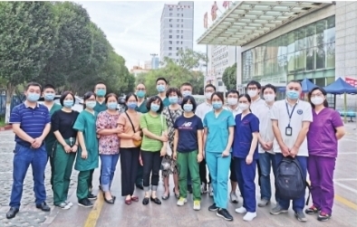 武汉核酸检测医疗队在新疆医科大学第五附属医院合影。