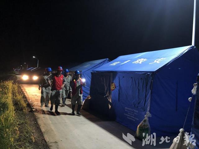 随着通顺河外水位的日益攀升,多处民垸陆续破垸分洪以缓解洪水压力,应急任务也接踵而至。7月7日傍晚,张勇带领防汛保电突击队冒暴雨施工11小时,为洪北大堤亮起点亮千盏路灯。次日下午再出击,连夜为消泗乡汛情避险转移群众的600多顶安置帐篷接通临时电源。此外,他们还完成对军山外垸等19台变压器紧急停电避险、为兴无垸架设800多盏临时照明线路等任务……