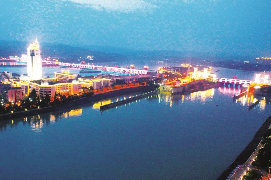 20日晚,葛洲坝夜景。三峡晚报全媒记者黄善君 摄