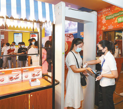 20日,浙江宁波的观众在测温后进入影院。陈张坤摄(人民视觉)
