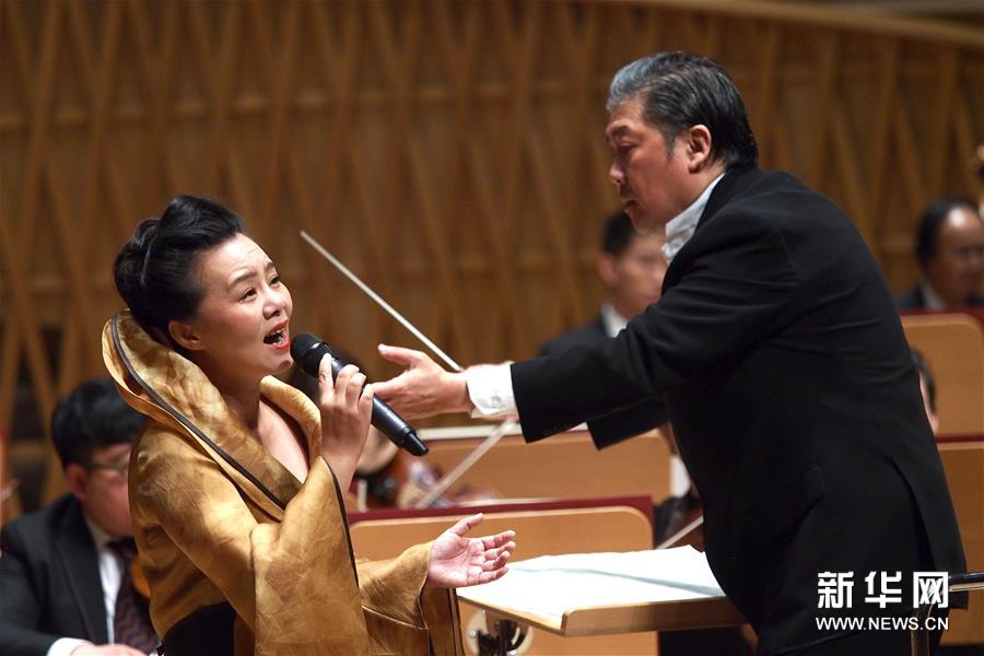 2020年7月20日晚,为期10天的2020上海夏季音乐节开幕。开幕音乐会上,余隆执棒上海交响乐团演绎西贝柳斯的《图翁内拉的天鹅》《忧郁圆舞曲》和斯特拉文斯基《火鸟》组曲,并携手龚琳娜带来老锣的歌曲《静夜思》《山鬼》。 新华社记者 任珑 摄