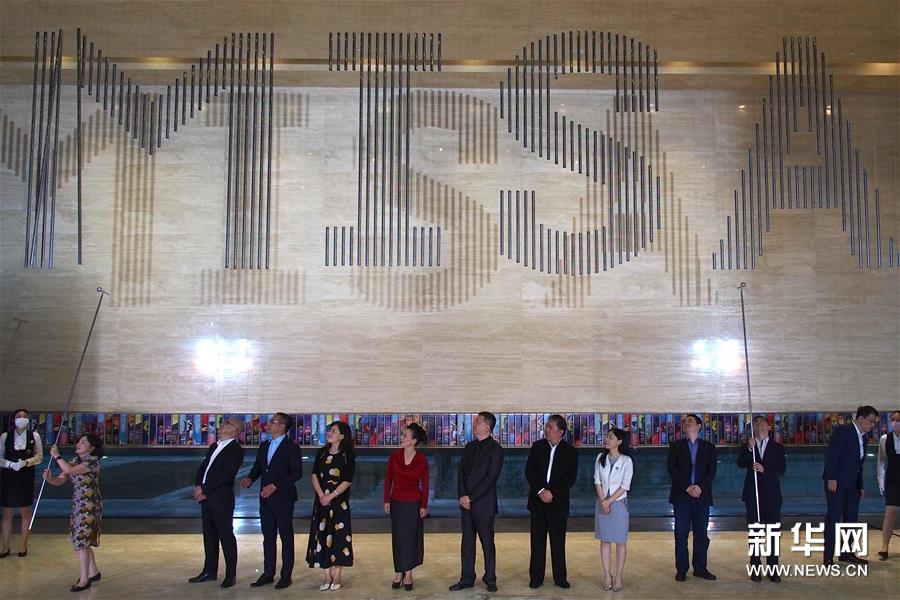 7月20日,嘉宾在开幕式现场敲响上海夏季音乐节装置作品《风铃》。 新华社记者 任珑 摄