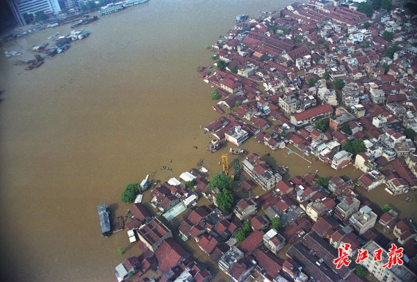 因水而盛,也因水而险,1931年、1954年、1998年,3次大洪水让武汉饱经考验。据记载,每当汛期水位达到27.50米,南岸嘴便是一片泽国,屋基随流水被冲跑,人们不得不搭起吊脚楼,水来则跑,水退回家。1998年特大洪水时,南岸嘴共有居民1284户、4216人,企业47家,码头8座,当年洪水导致经济损失达1000多万元。