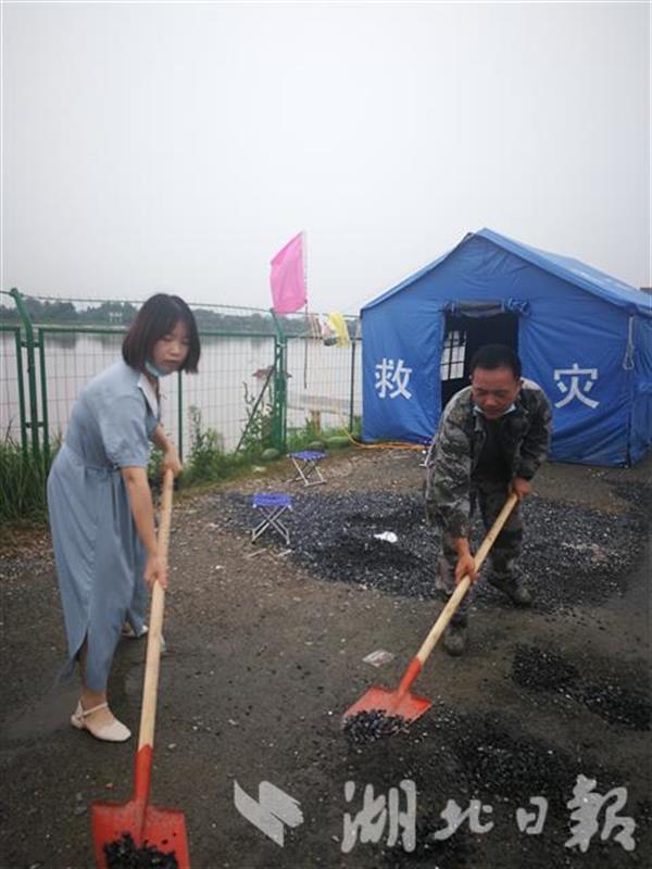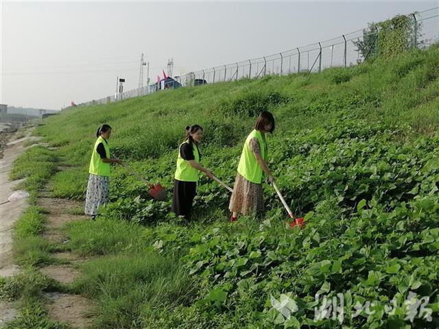 湖北日报讯(通讯员程荣东)7月20日下午,府河安陆解放山水库大坝东副坝上,暑气袭人,安陆市应急管理局的谢复丹、郭琦、汪清丽等3名女干部手持铁锹,脚穿雨鞋,正开展巡堤查险工作。