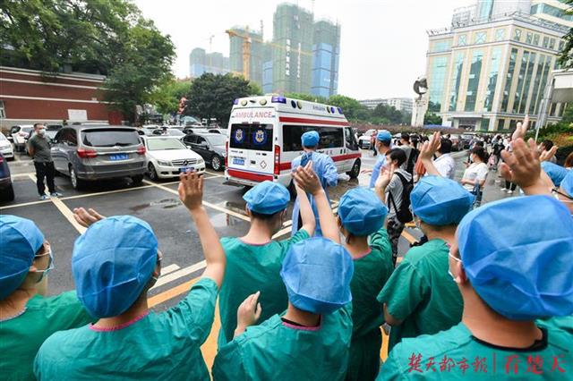 国家卫健委医政医管局医疗质量与评价处处长马旭东曾在手术室全程观摩了崔志强的肺移植手术,并始终关注着他的康复过程。21日,半年多来一直驻守武汉的马旭东,也专程来到医院欢送崔志强回家。