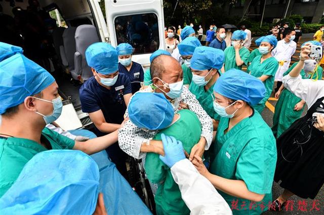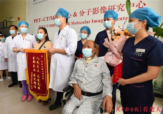 “浴火重生,逆境归来!”曾经感染新冠肺炎九死一生、命悬一线,接受湖北首例肺移植手术92天后,7月21日,65岁的崔志强在医护人员的加油与祝福声中,在女儿的陪伴下,从武汉大学人民医院出院。