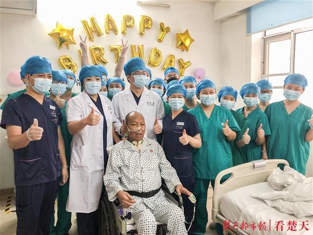 “浴火重生,逆境归来!”7月21日,医护人员将崔志强的单人病房做了精心的生日布置,并为他举行了简短热烈的欢送出院仪式,庆祝他重生。