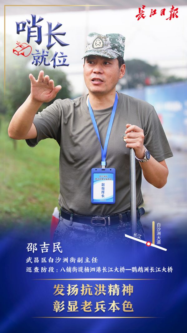 长3.6公里的八铺街堤共6个闸口,设4个哨棚。来自武昌区白沙洲街、珞珈山街、中南路街、南湖街、武汉航发集团等街道、社区、企业的党员干部、志愿者和民兵等分段负责,每班至少安排8人,实行24小时三班倒不间断值守。身为哨长,邵吉民对每个防段和哨棚都要巡查管理,做到全覆盖、无遗漏。
