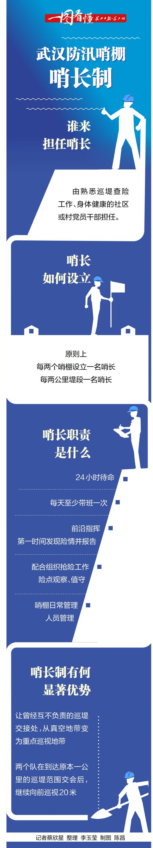 据了解,按照武汉防汛哨棚哨长制要求,防汛责任必须明确到人,提升汛期突发事件的处置能力。每2公里堤段、每两个哨棚设置一名哨长,统筹两个哨棚的人员、物资调配,做好上传下达工作,提升险情发现、处置效率。