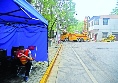 7月20日,南岸嘴高公闸口处,排水车24小时待命。