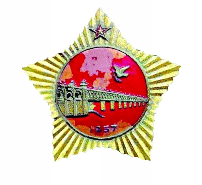 武汉长江大桥建成纪念章,用来表彰参加建设大桥的工作人员。