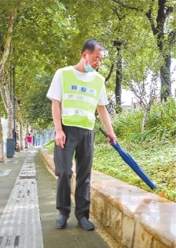 长江日报讯(记者谭德磊)7月15日下午3时,武汉雨过天晴,长江水位降至28.41米,58岁的老党员李琳沿着武昌江滩中华路码头一路巡堤查险,检查是否有渗水点。