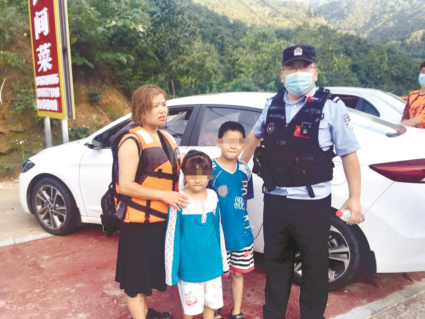 情况紧急,民警立即根据现场实际制定合理救援方案,大家兵分两路,一路在农家乐老板及好心市民的配合下,去营救两名小孩;另一路在消防救援大队帮助下,去营救孩子的母亲。