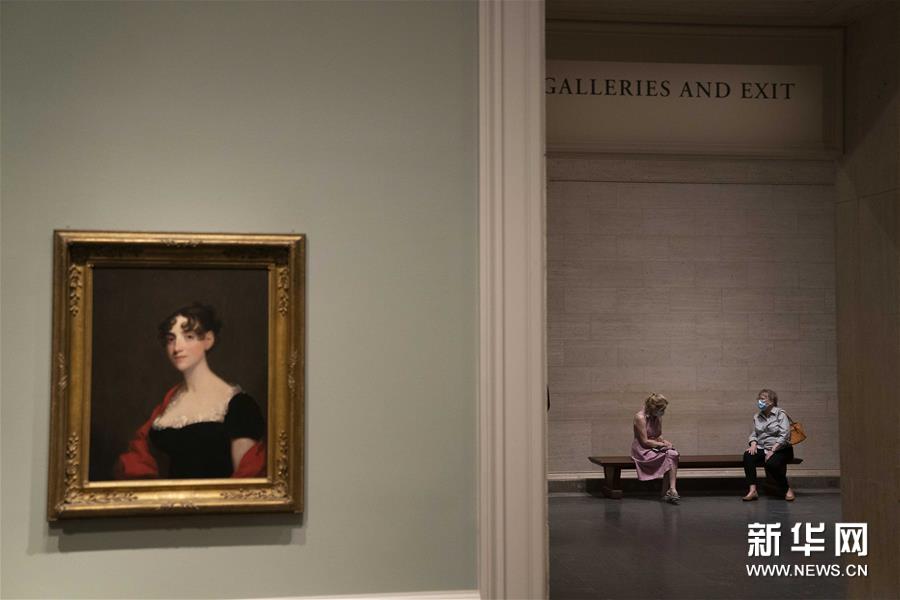 7月20日,在位于美国华盛顿的国家美术馆,参观者在长椅上休息。当日,美国国家美术馆西馆部分展厅开始重新对公众开放。观众需要在网站上提前预约,然后按照电子门票上规定的时间段参观。受新冠疫情影响,美国国家美术馆此前已关闭数月。新华社记者 刘杰 摄