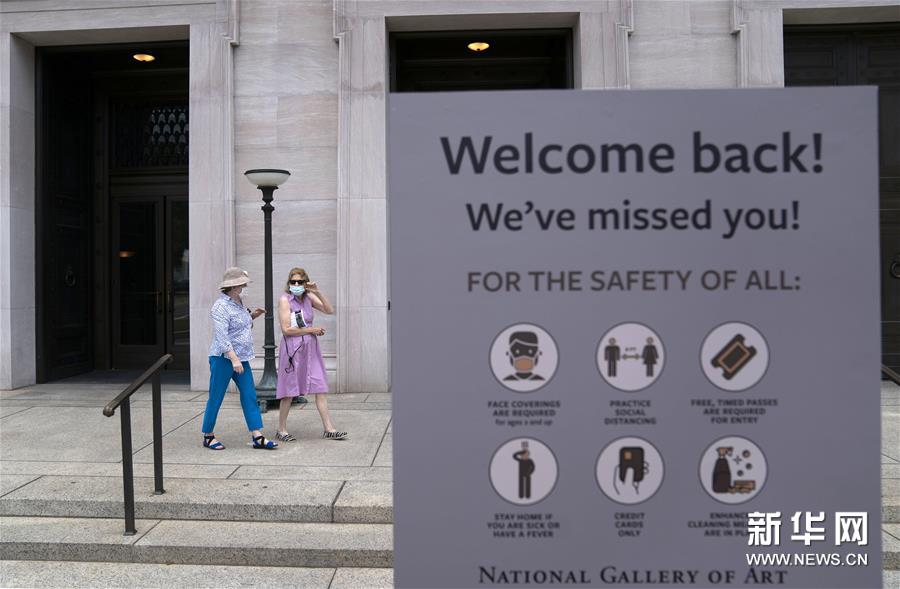 7月20日,观众在位于美国华盛顿的国家美术馆参观结束后离开。新华社记者 刘杰 摄