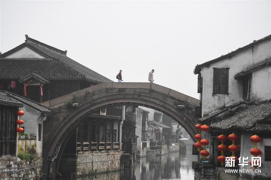 7月21日,游客走在南浔古镇通津桥上。新华社记者 黄宗治 摄