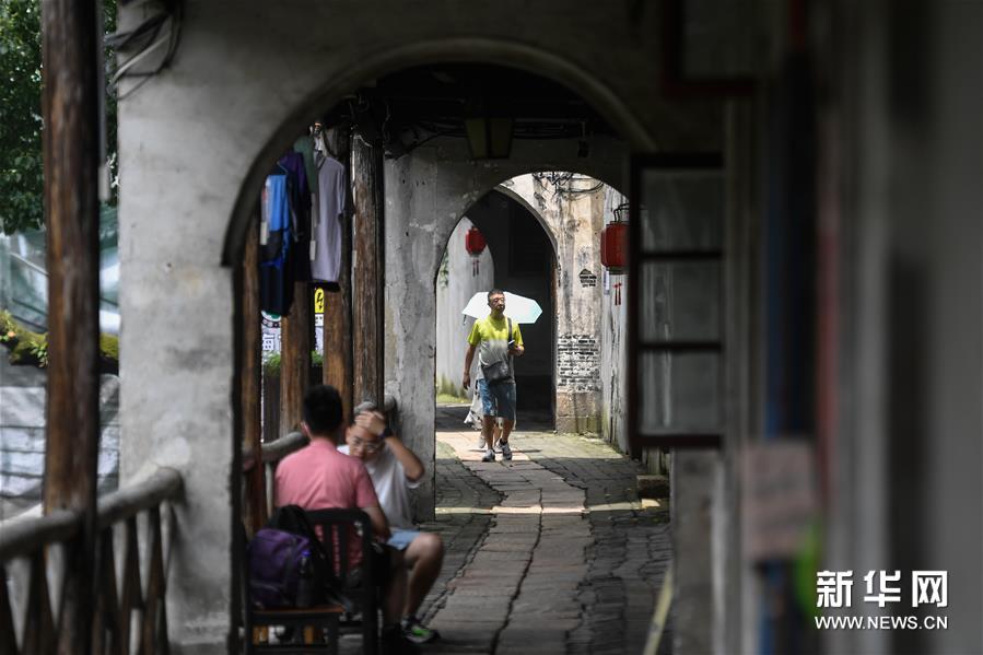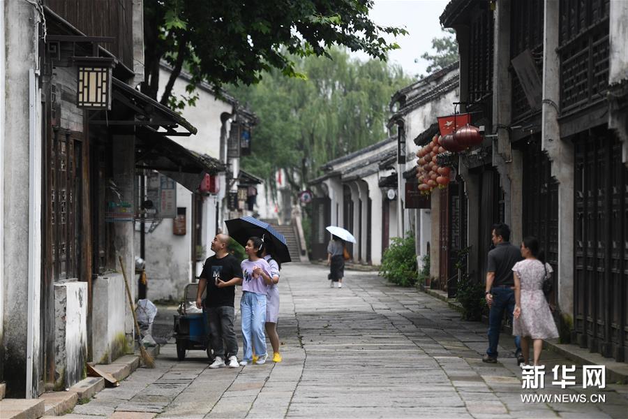 7月21日,游客在南浔古镇北部入口游览。新华社记者 黄宗治 摄