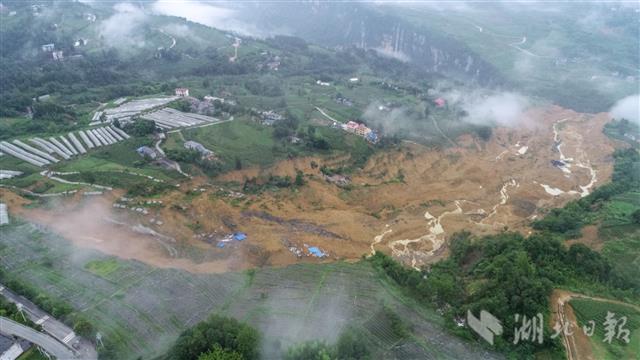 7月21日,恩施市屯堡乡马者村沙子坝滑坡体出现大面积滑移。