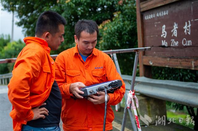 7月21日,恩施市屯堡乡马者村,湖北省地质调查院工作人员在滑坡现场使用探地雷达对滑坡体进行探测。