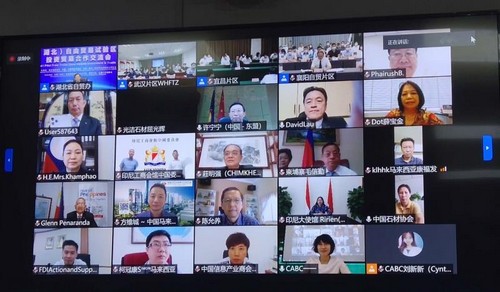 中国-东盟商务理事会执行理事长许宁宁、老挝驻华大使坎葆·恩塔万、湖北省商务厅副厅长陈华荣致辞。湖北自贸试验区武汉、襄阳、宜昌片区分别开展营商环境和投资贸易合作推介,菲律宾工商总会、泰国工商会以及柬埔寨、印尼、菲律宾驻华使馆分别介绍了本国合作商机。会上,中国(湖北)自由贸易试验区工作办公室与中国-东盟商务理事会、三个片区管委会与新加坡、菲律宾、泰国有关商协会分别签署合作备忘录。三个片区参会企业就赴东盟开展投资、出口等事宜与东盟方进行在线交流。此次会议以“云端推介交流”的方式,实现湖北自贸试验区与东盟国家工商界和驻华机构开展互动交流、共话商机,向东盟各国推介了湖北自贸试验区产业发展新机遇,展现了湖北疫后重振、高质量发展的新形象。