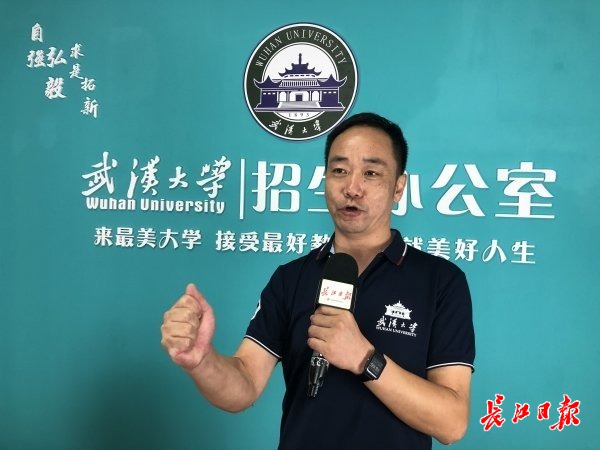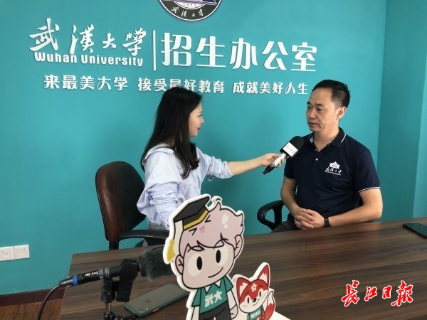 武汉大学招生工作处处长王福接受长江日报直播采访。 记者胡义华摄