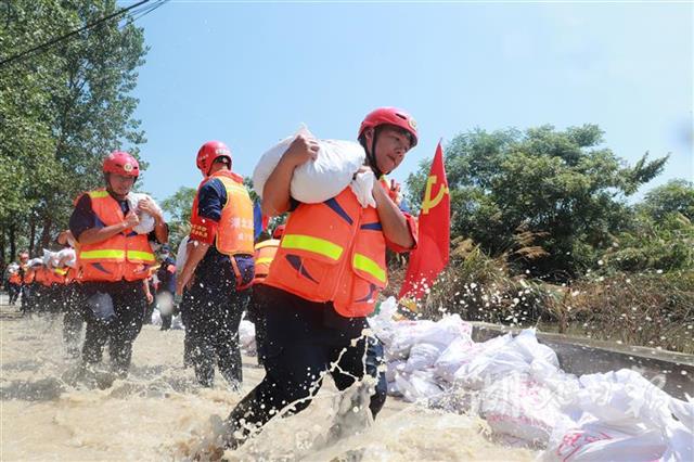 湖北日报讯(通讯员王基达、王孙致远)7月22日,湖北省消防救援总队援赣抗洪突击队50名队员赶到九江市都昌县春桥乡,与干群携手,抢筑围堰,铺设砂石,打通最后一条阻碍当地1.7万余名群众出行和物资供给的通道。据了解,春桥乡春西公路文革桥是当地群众前往县城的唯一通道,受洪灾影响,桥面已被洪水淹没,与鄱阳湖湖水连成一片,文革桥也成为了群众出行的“肠梗阻”。