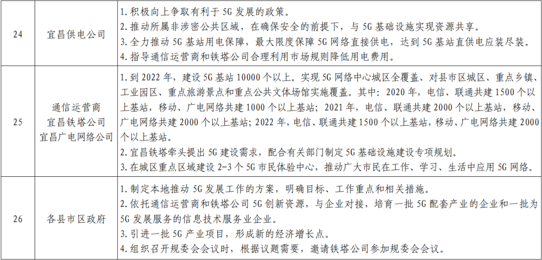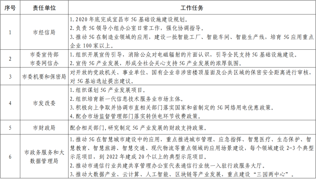 宜昌市推进 5G 产业发展任务清单